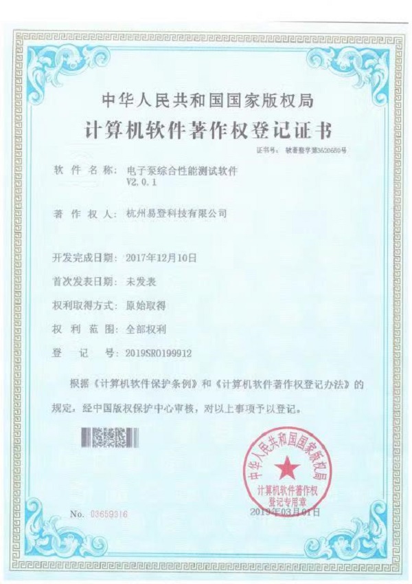電子泵綜合性能測(cè)試軟件證書(shū)