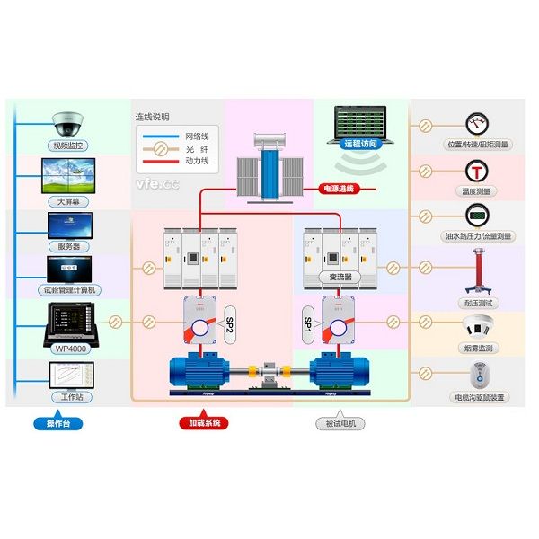 電機(jī)測試系統(tǒng)簡介:系統(tǒng)通過對測功機(jī)、功率分析儀、電源、示波器、溫度記錄儀等測試儀器的程序控制,實現(xiàn)對電機(jī)系統(tǒng)的自動化測試。
